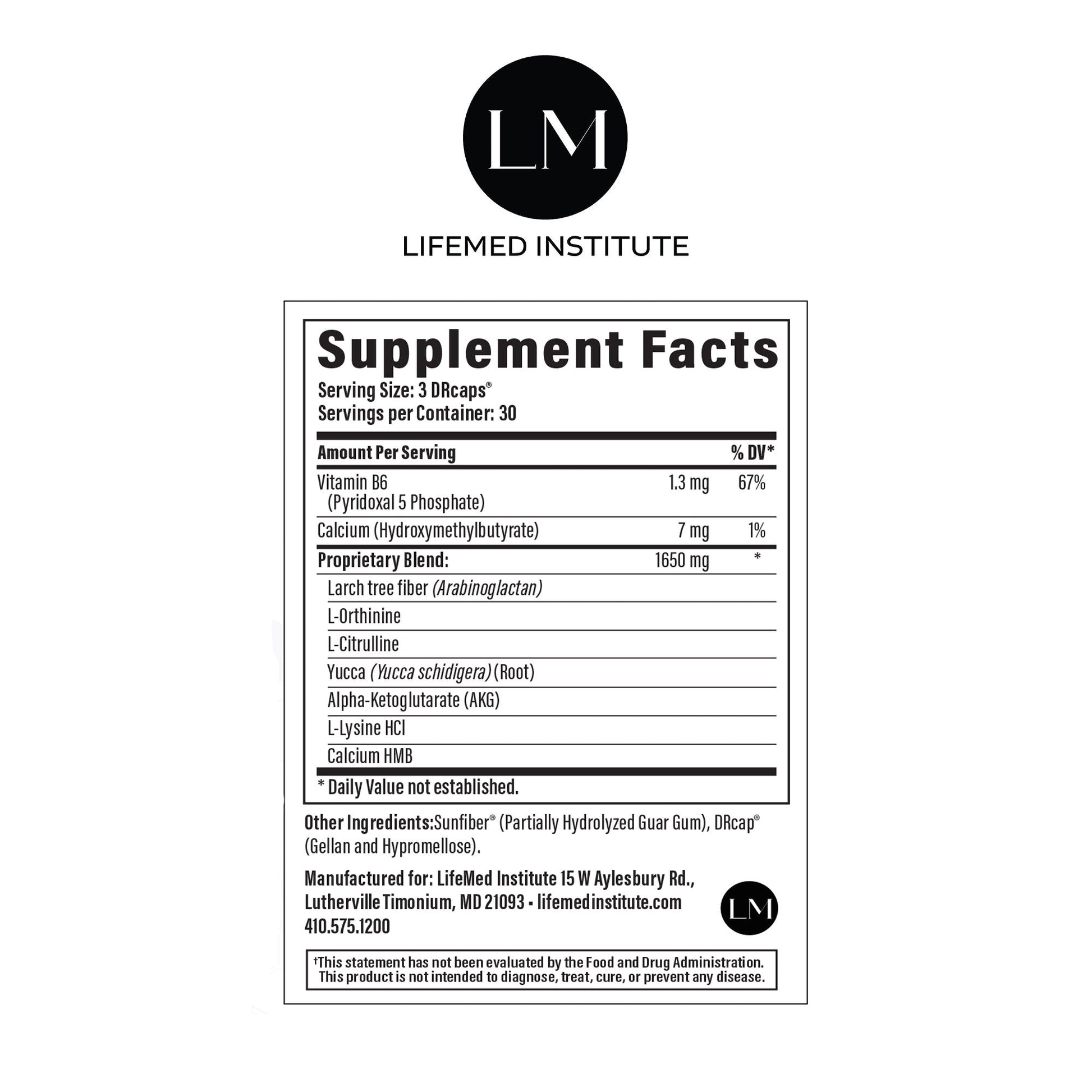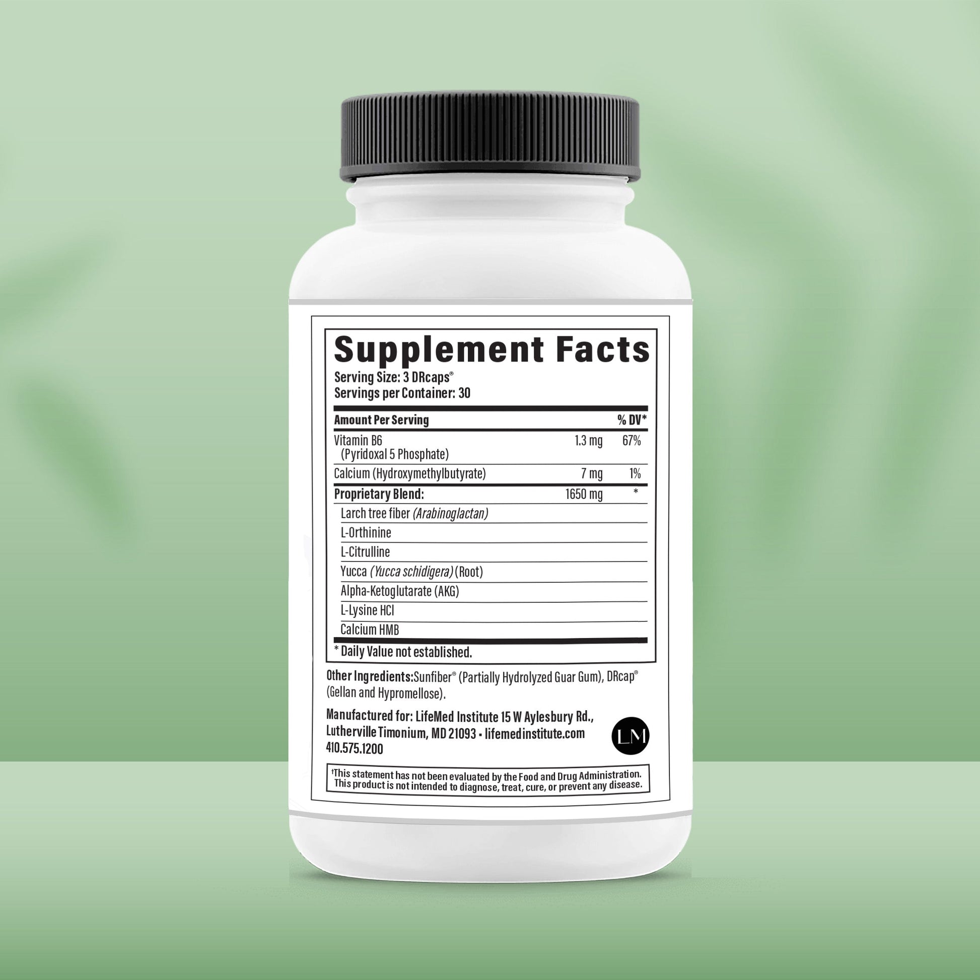 Alpha Ketoglutarate, Calcium, L-Citruline, L-Lysine HCI, L-Orthinine, Larch Tree Fiber, Vitamin B6, Vitamin B6 (as Pyridoxal 5-Phosphate), Yucca
