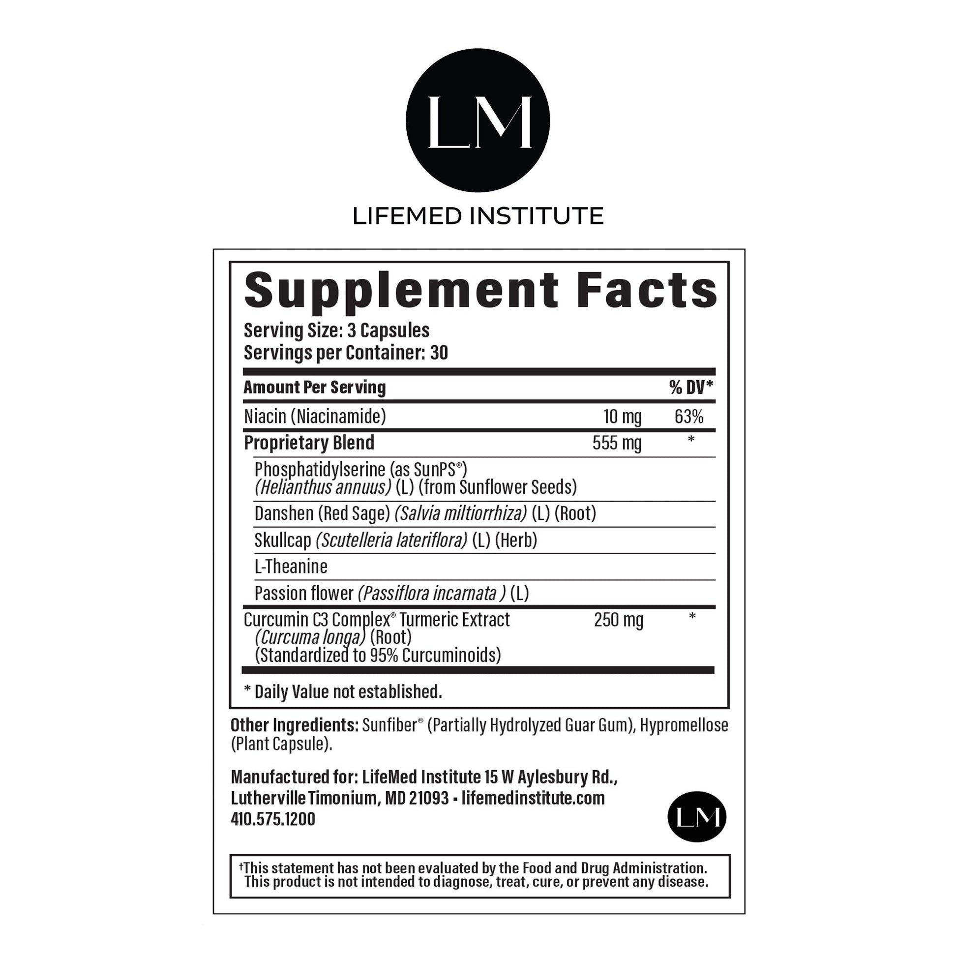 Curcumin Longvida®, Danshen, L-Theanine, Niacin, Passion Flower, Phosphatidylserine, Skullcap