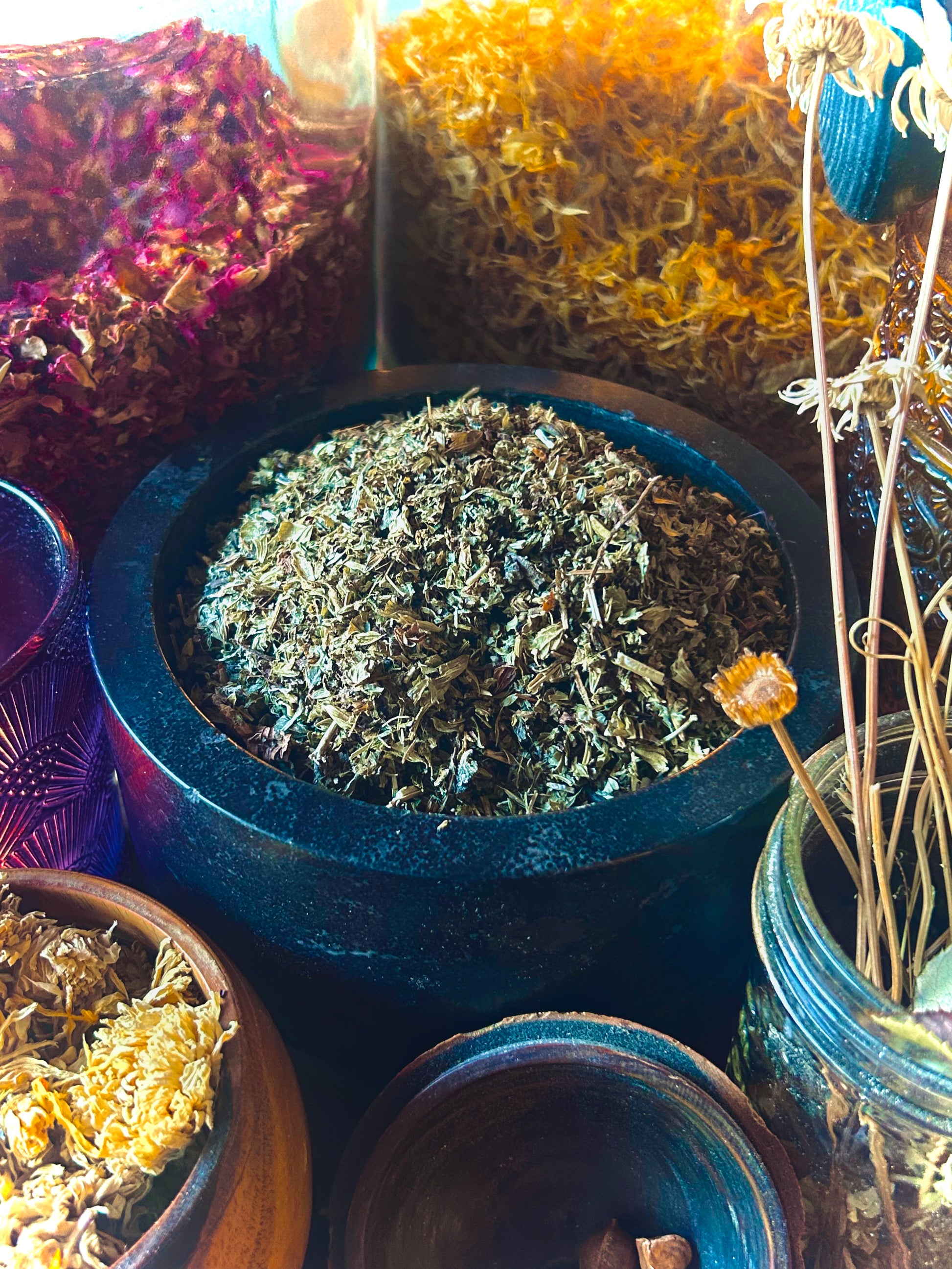 Motherwort is celebrated for its cardiovascular support, particularly in regulating heart rhythm and easing palpitations. It supports menstrual and reproductive health by alleviating cramps and promoting hormonal balance. Additionally, it calms the nervous system, reducing anxiety and fostering emotional resilience. Spiritually, Motherwort embodies nurturing and maternal energy, making it ideal for heart-centered practices, promoting calmness, and fostering emotional strength.